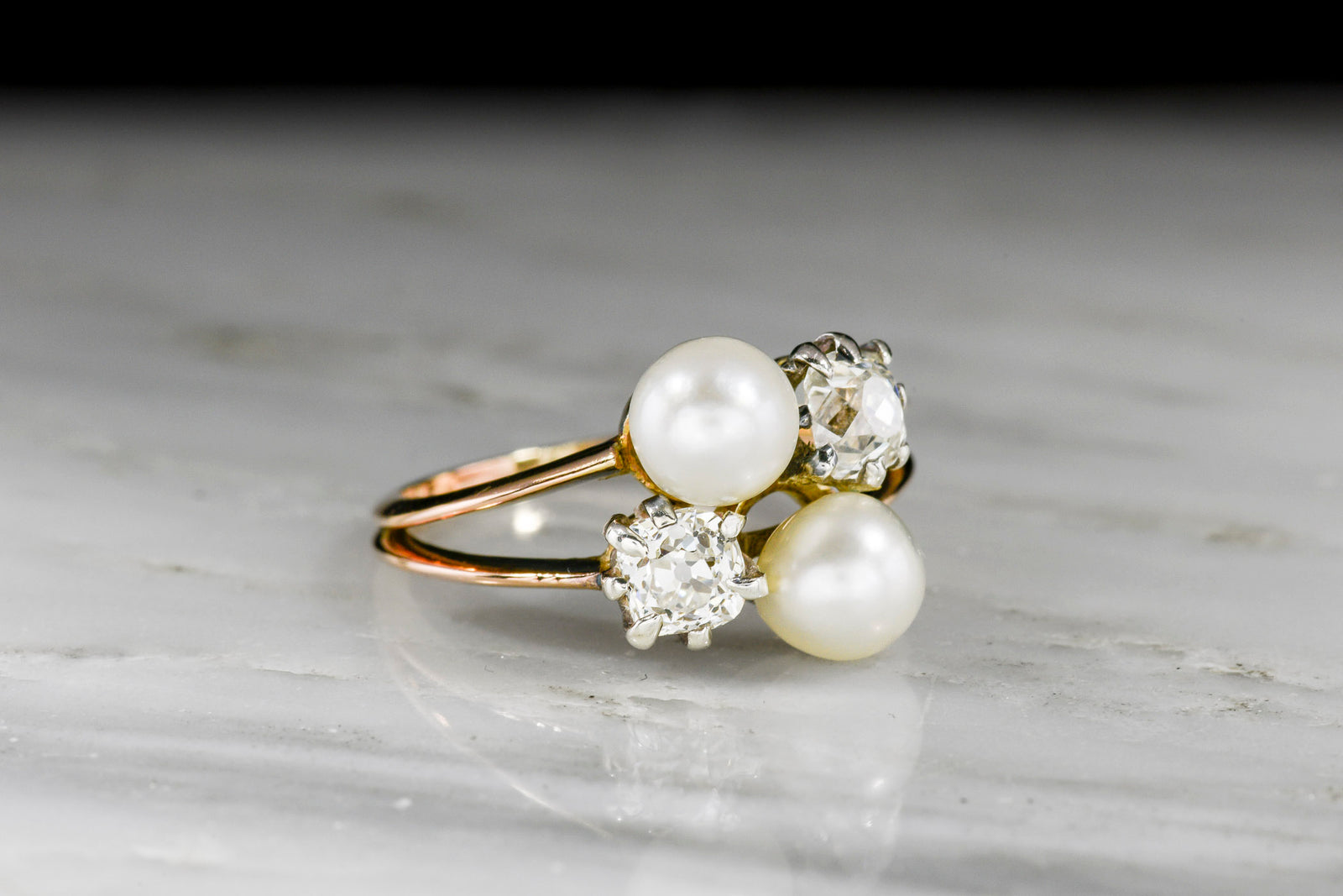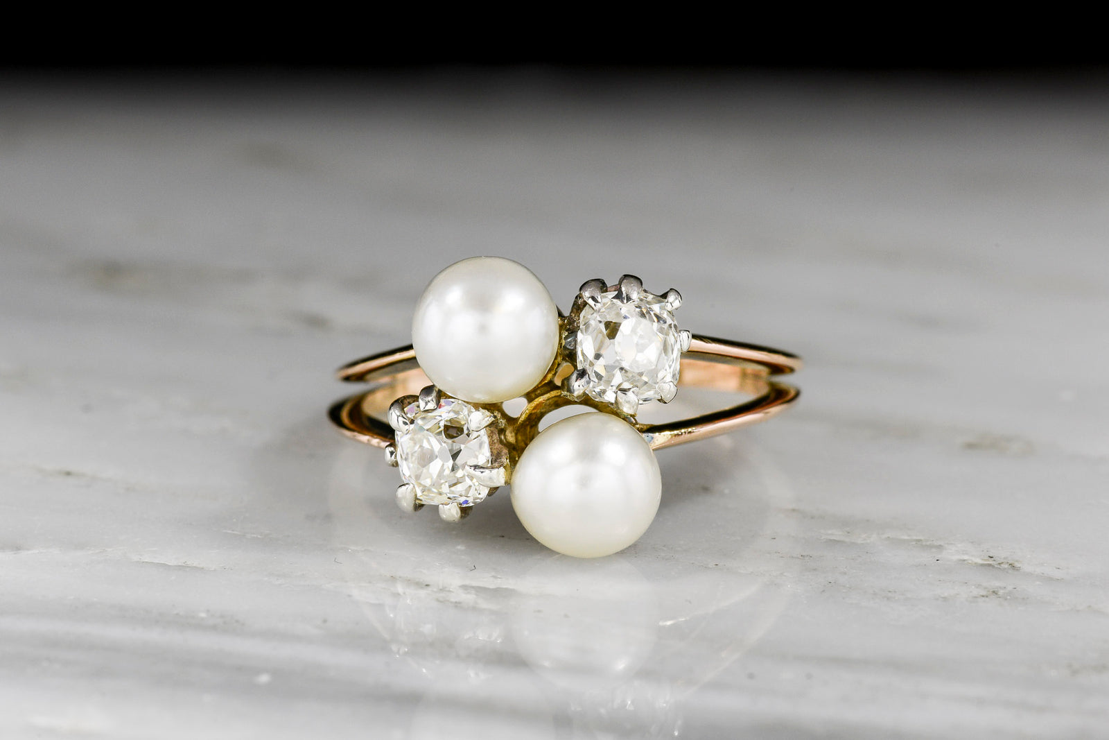 $ 6,250.00Victorian Twin-Shank / Bypass Natural Saltwater Pearl and Old Mine Cut Diamond Right-Hand Ring