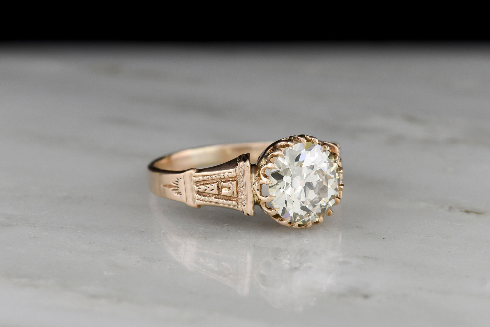$ 8,900.00Late/Post Victorian Solitaire Engagement Ring with Engraved Shoulders
