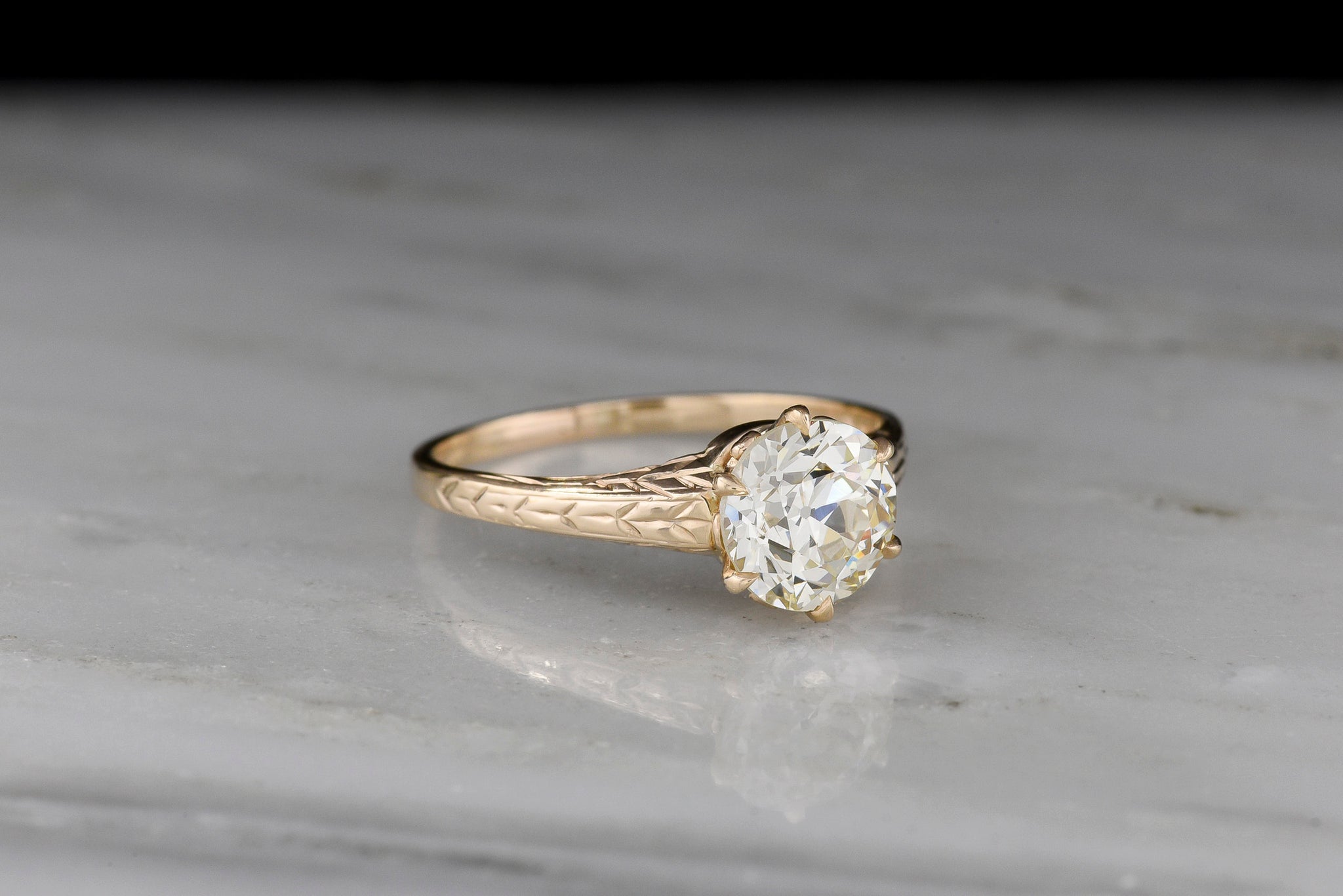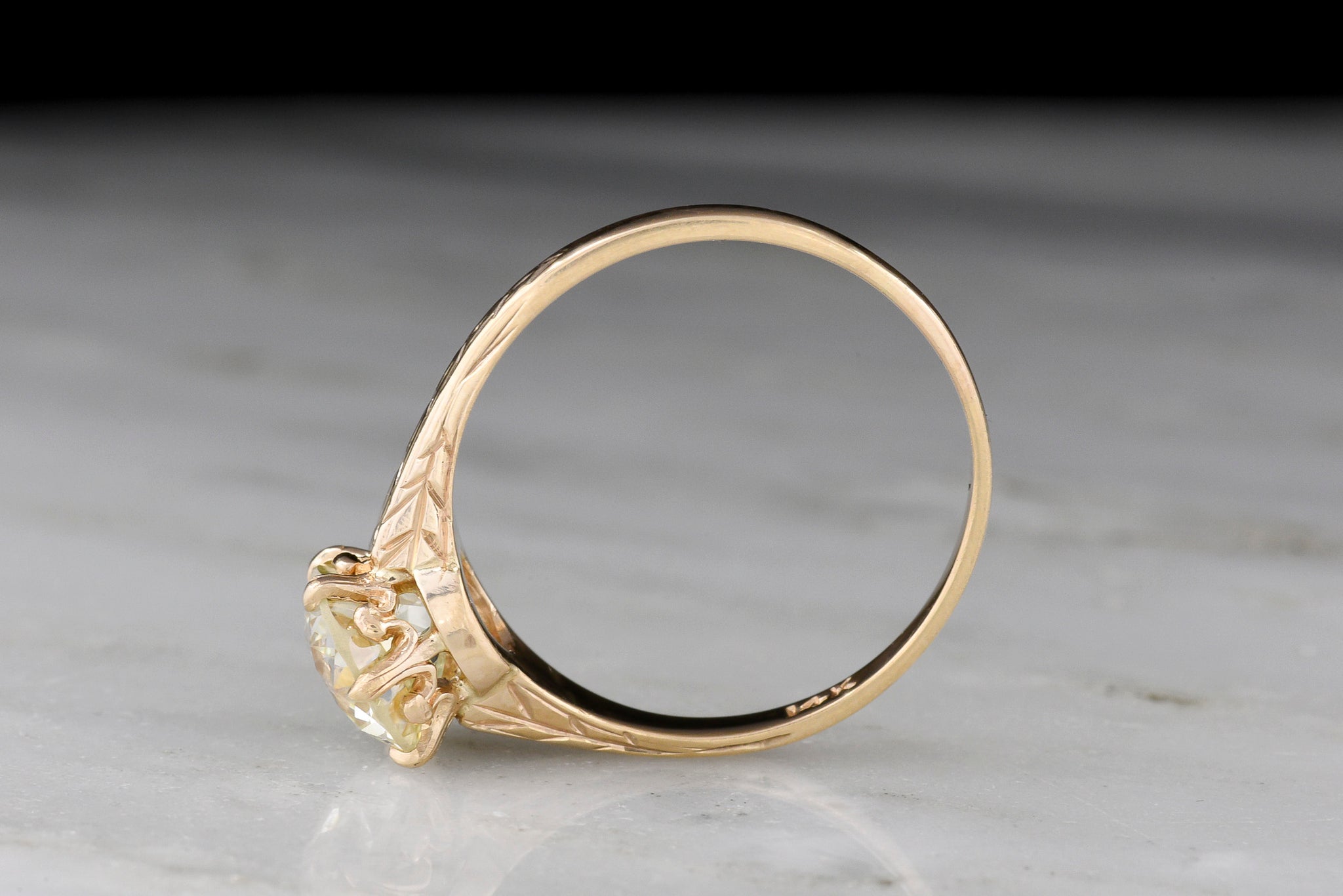 Late/Post Victorian Solitaire Engagement Ring with Engraved Shoulders