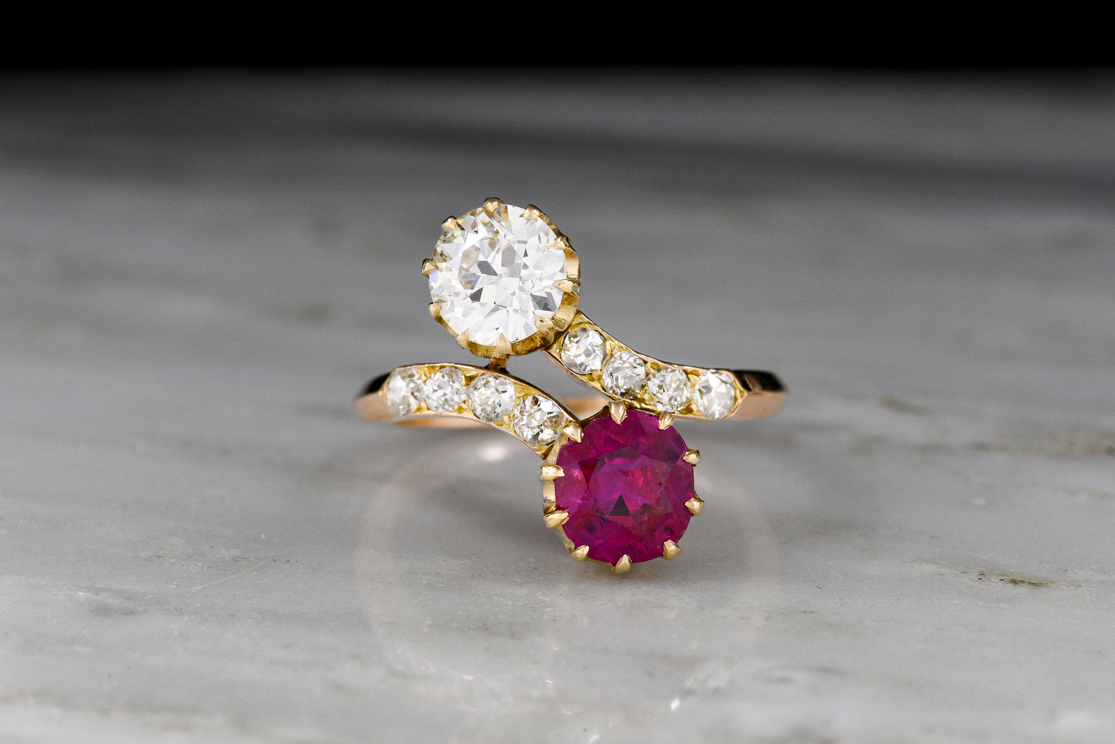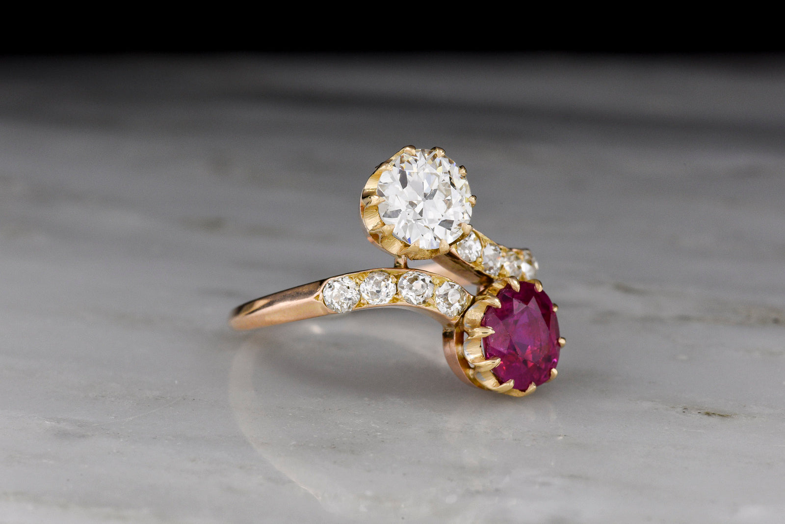 $ 5,500.00Late-Victorian Bypass/Toi et Moi Ring Featuring a GIA Burmese No Heat Ruby and Old European Cut Diamond