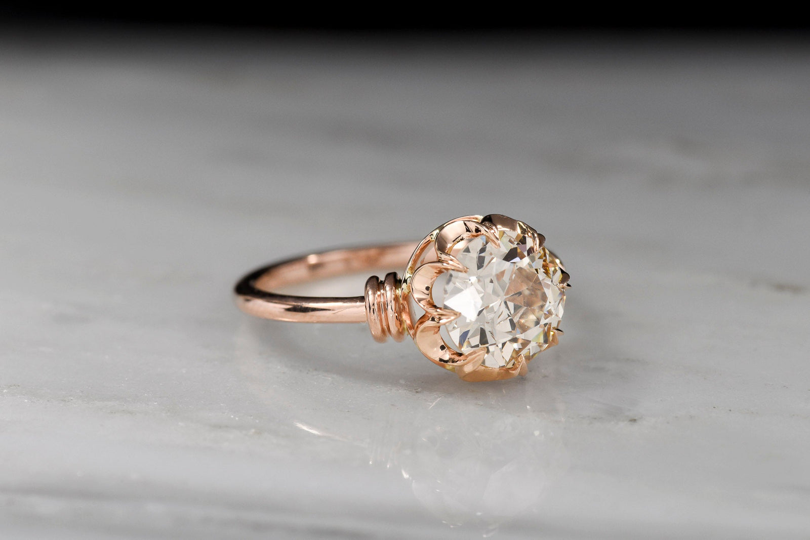 $ 10,500.00P&P Original--Victorian Revival Engagement Ring in Recycled 18K Rose Gold with a Light Brown / Cape-Colored Diamond Center