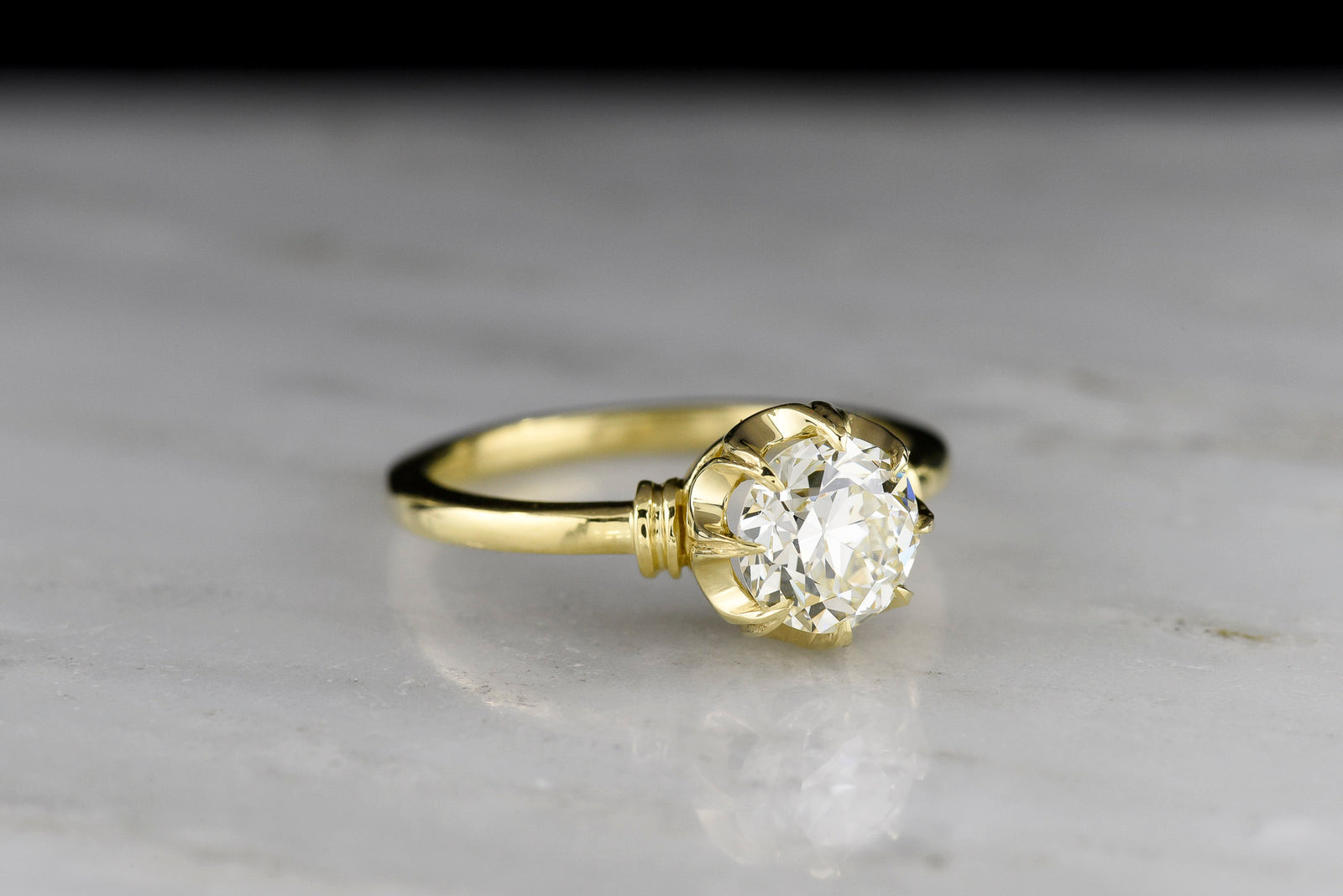 $ 3,000.00P&P Original: Victorian-Influenced 18K Yellow Gold Solitaire with a Warm Late-Transitional Cut Diamond