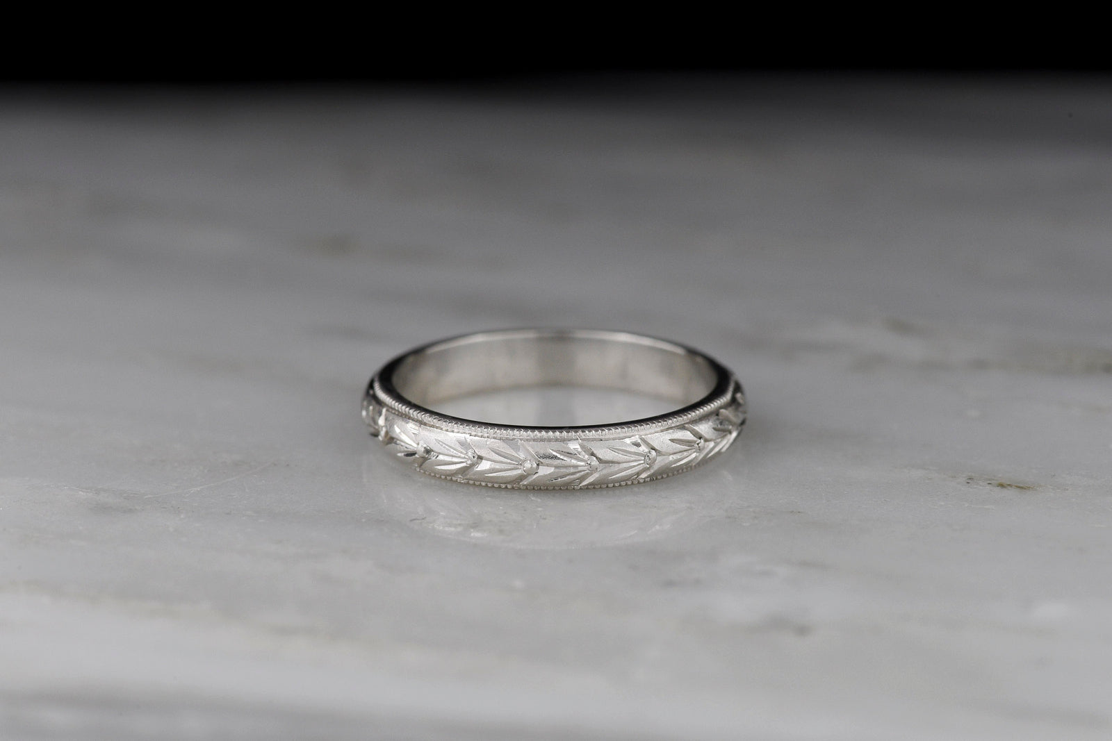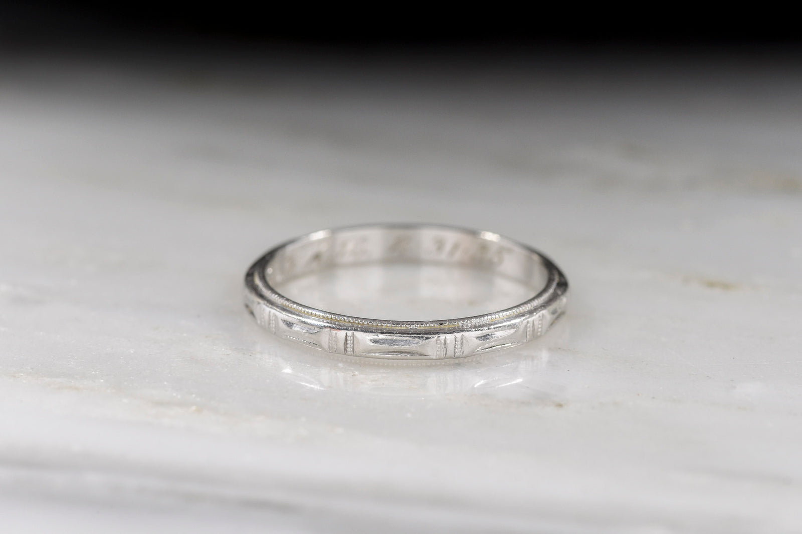 $ 1,100.001935 Art Deco Platinum Wedding or Stacking Band with Subtle Geometric Patterning