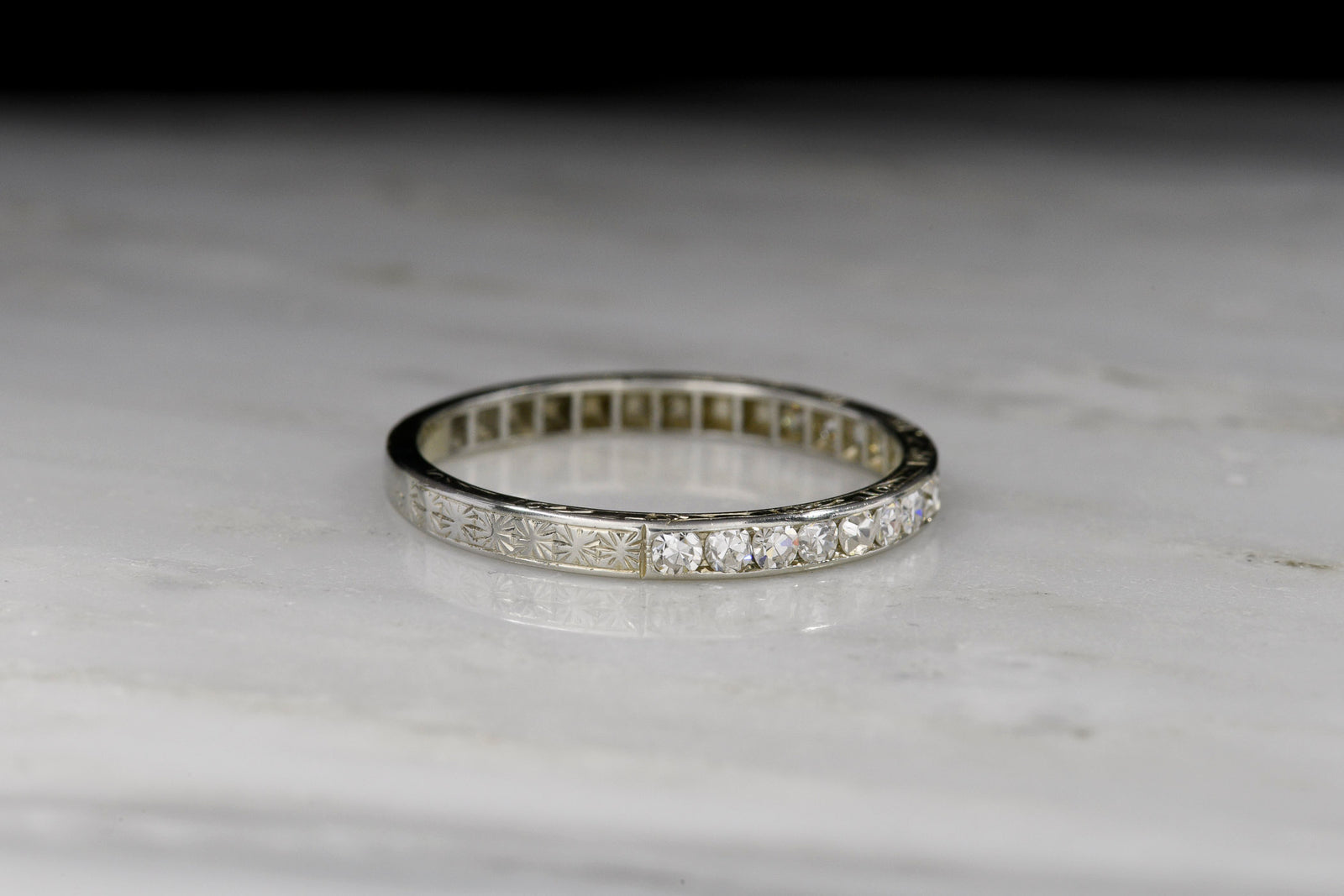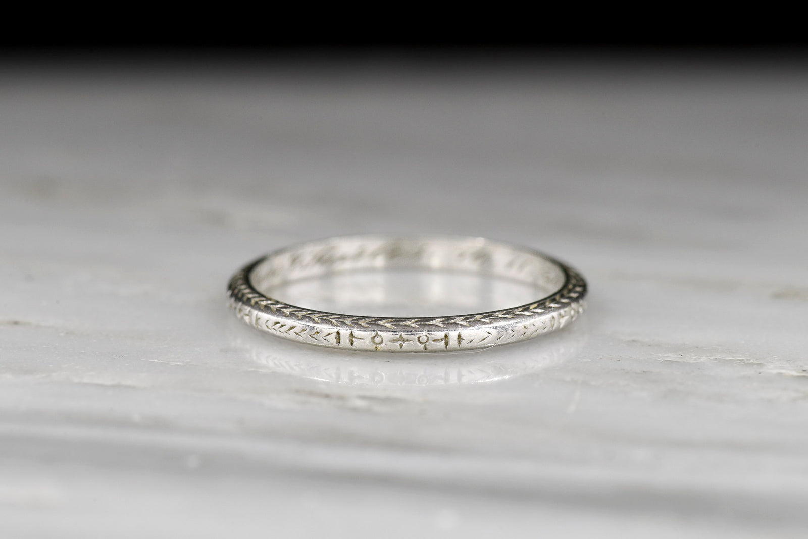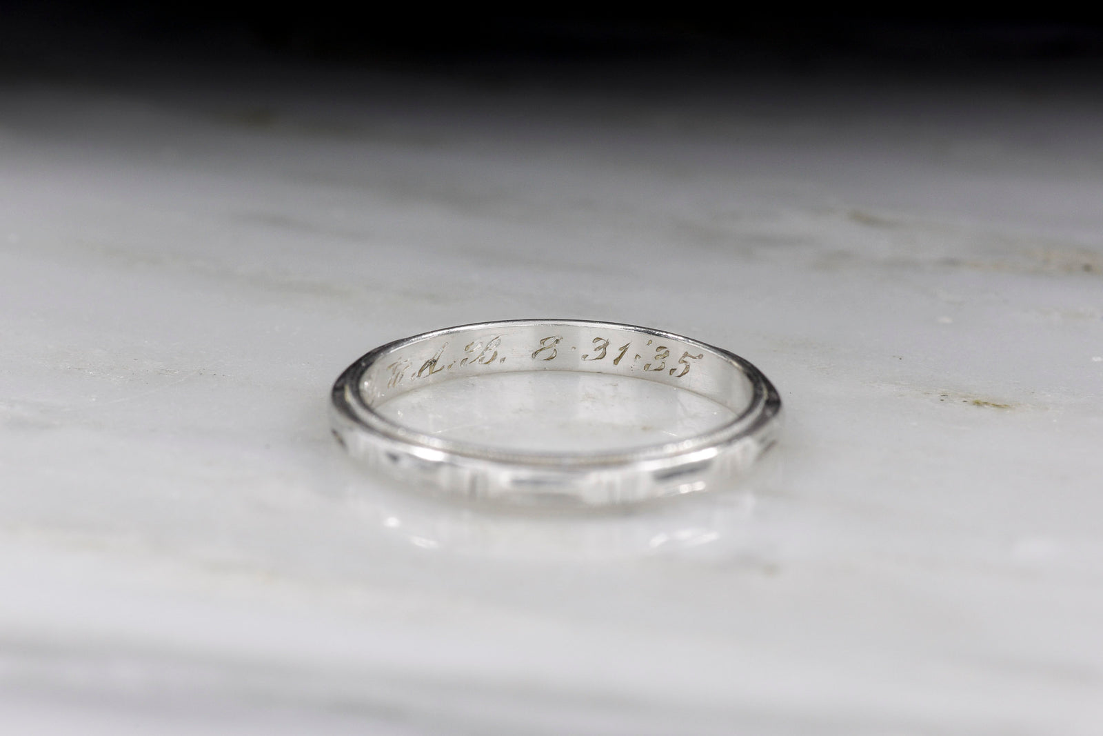 $ 1,350.00c. 1930s Art Deco White Gold and Diamond Wedding Band with Engraving